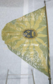 Drapeau du régiment suisse de Roll au service de France avec hampe, 1641 à 1649. Ce régiment a notamment combattu à la bataille de Rocroi (1643).